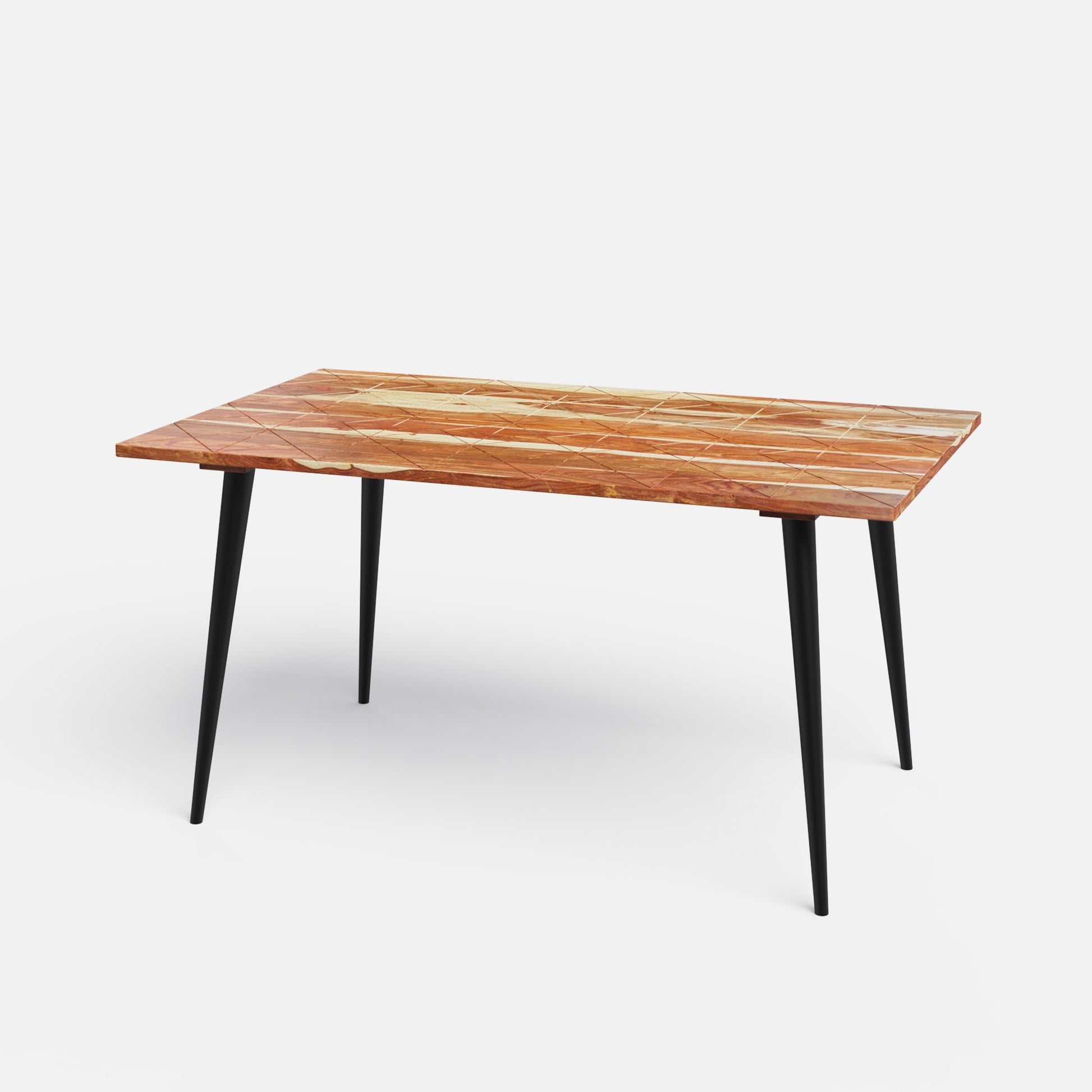 When robust meets finesse! The Shelly Luxury Dining Table is the result of dexterous woodwork and refined metalwork. With a parquet finish top and an eminently robust metallic frame, the Shelly Luxury Dining Table will become a mainstay of your dining room for decades to come. The honey finish on Sheesham wood pairs well with neutral color schemes and earthy tones. The metallic frame provides enhanced stability for the table. The black powder-coating on it provides the perfect aesthetic balance to the wooden top, the parquet finish of which will make this fixture stand out.