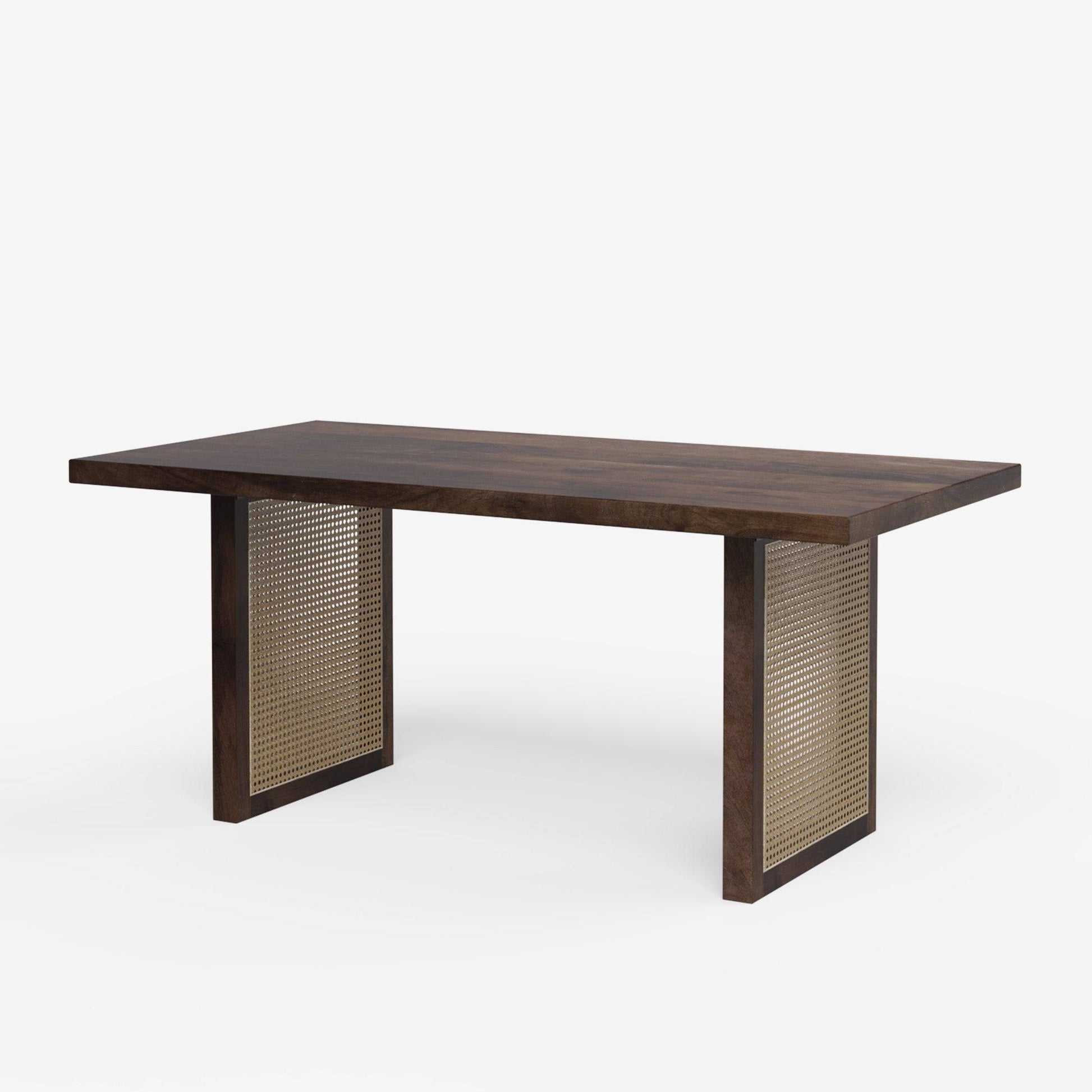 The Stanley Rattan Dining Table seamlessly blends with various décor styles, from contemporary to rustic and traditional, thanks to its versatile design. Its rattan cane detailing adds elegance and a tropical touch to any space. This table beautifully marries tradition with modernity, featuring a walnut-finished wood base and rattan cane accents. This combination not only creates a striking contrast but also introduces captivating textures. The wood base ensures stability, while the rattan weave infuses organic charm into your dining area. If you seek a fusion of tradition and modern aesthetics, the Stanley Rattan Dining Table is a perfect choice.