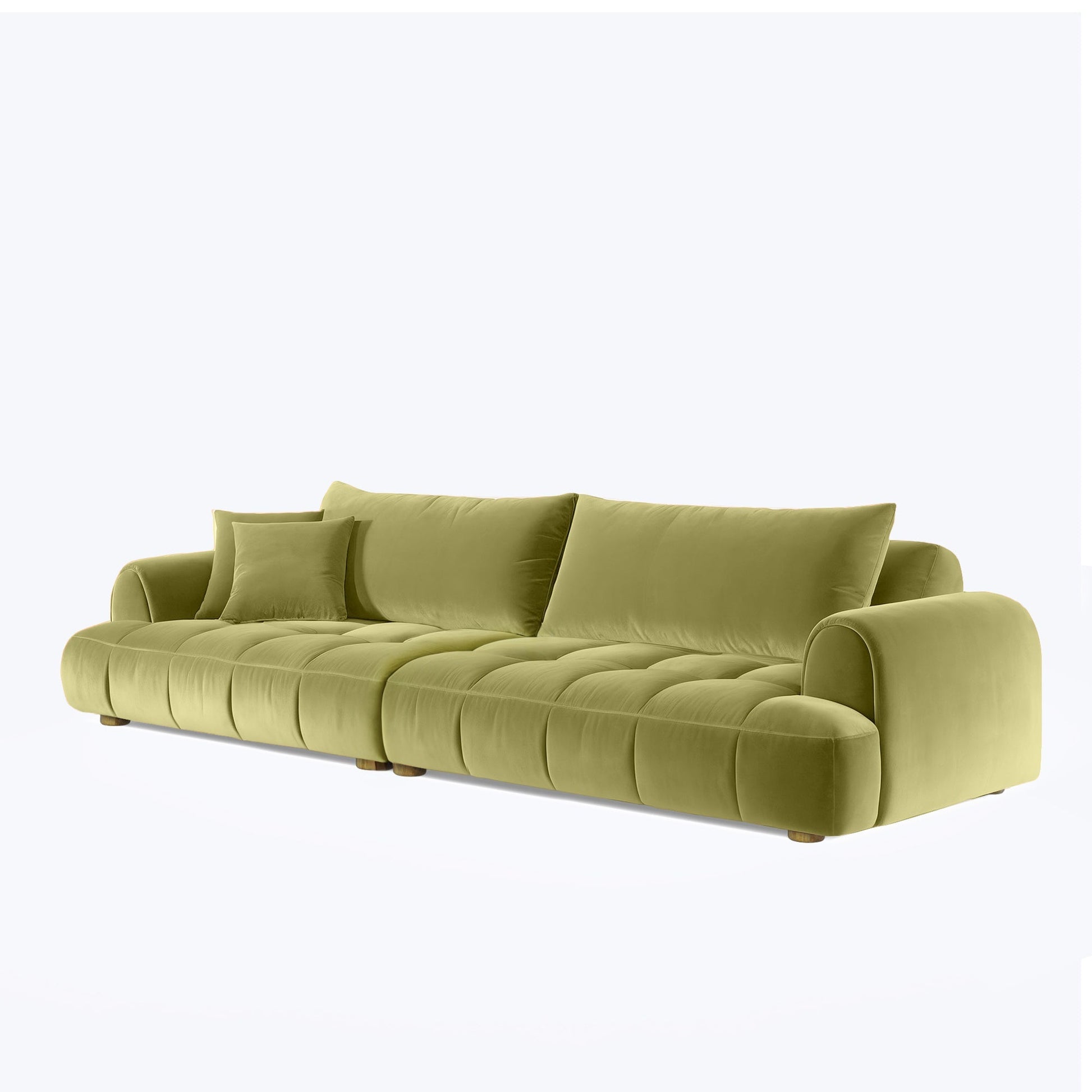The Beth Sectional Sofa is a modular marvel crafted for comfort-led lounging. Composed of three pieces—left seater, right seater, and a generously padded ottoman—it forms a spacious L-shape when arranged together. Wrapped in rich Olive Green velvet, its soft, sculptural form and tufted finish invite you to sit back, sprawl out, or curl up in style. A bold yet cozy centrepiece for modern living rooms.