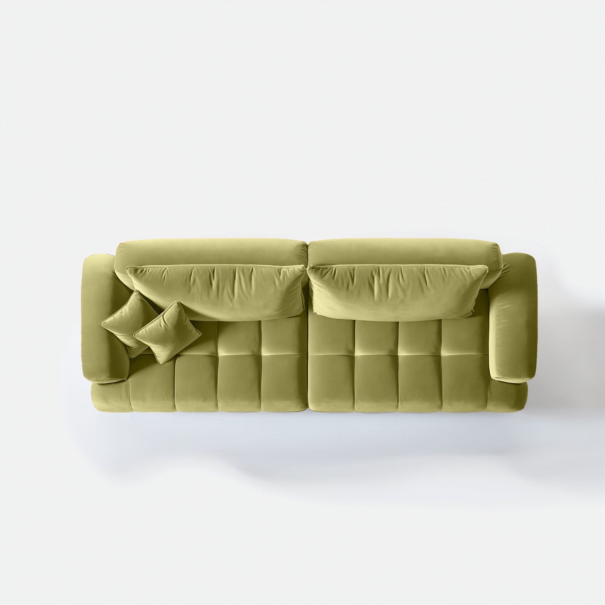- Upholstered in luxurious Olive Green velvet for a smooth, plush feel